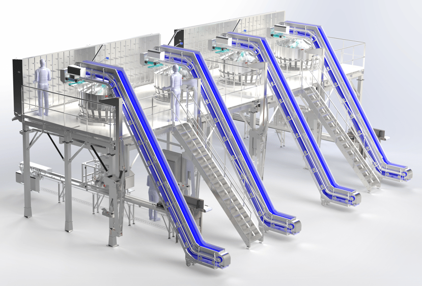 The new design didn’t just solve the labour issue — it also brought greater efficiency and lower overall costs of ownership. Cleaning was made simpler with elevators that lift up and down to allow full access, and the distribution tools designed with quick-release to enable fast clean-down between recipe changeovers.